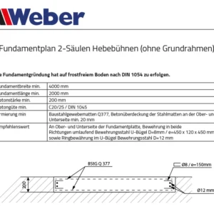 Pont élévateur à 2 colonnes Weber Série Klassik QSD-4000A avec ancrage et huile inclus