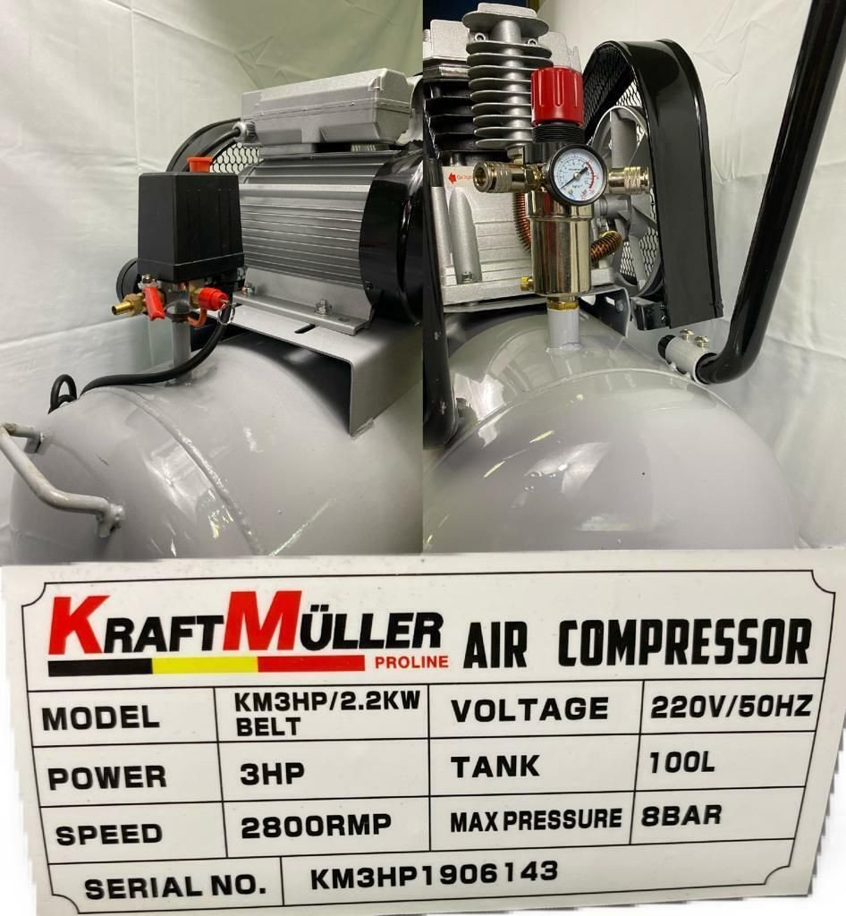 Compresseur 100Litres 3CV KRAFTMULLER – Capacité cuve: 100L